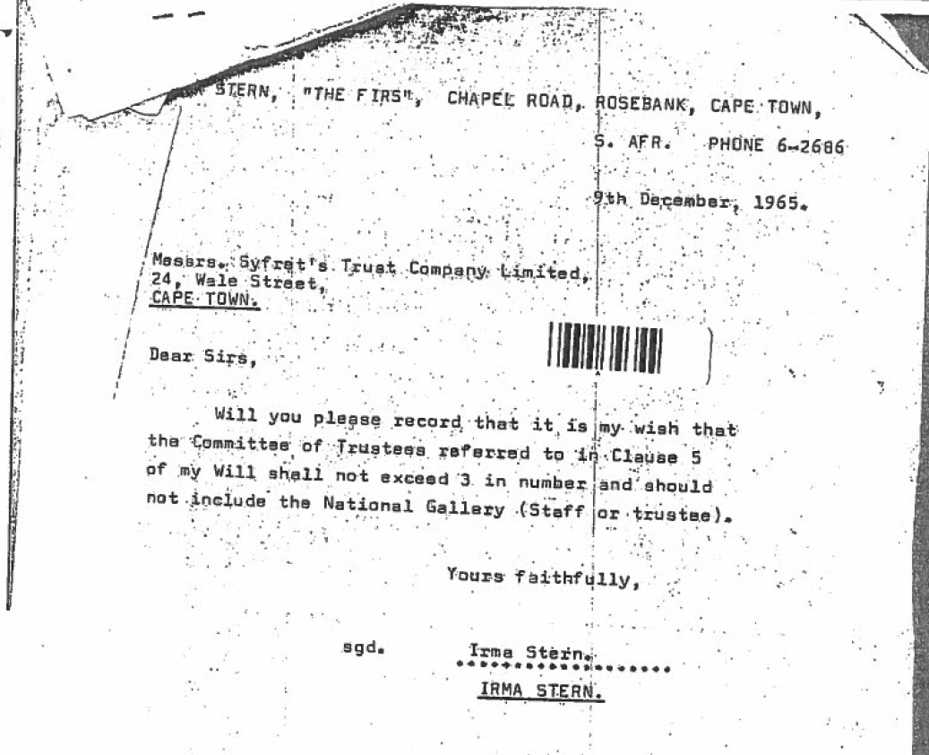 Click here to download Irma Stern's Last Will and Testament (format: PDF, size: 400kb).